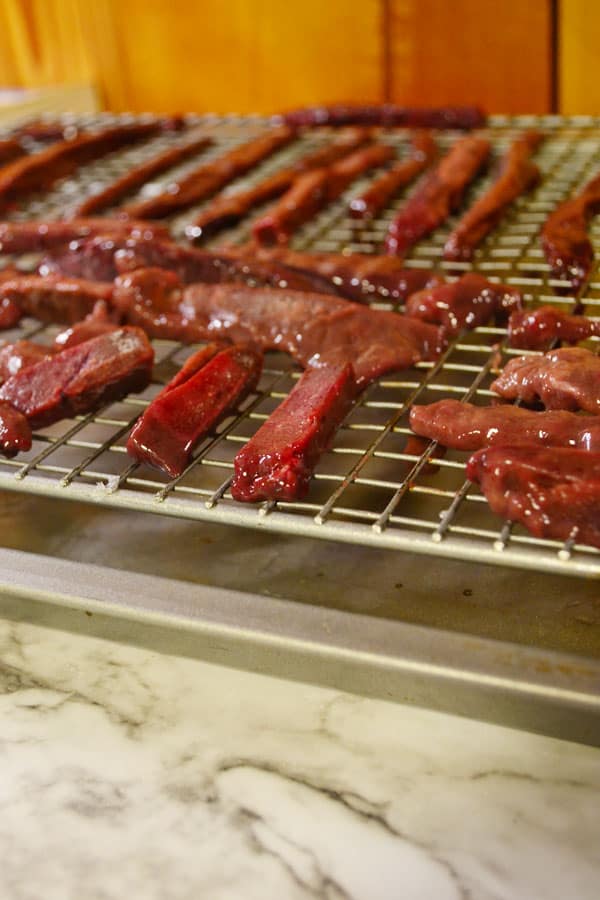 - Bake for three hours for pliable jerky, 5-7 hours for crispy jerky.